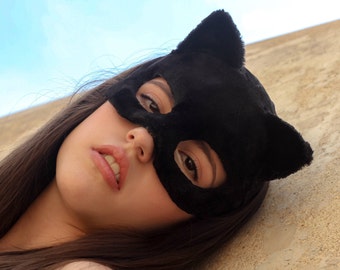 Faux Fur Black Cat Mask Animal Mask Anime Kitten Play Etsy