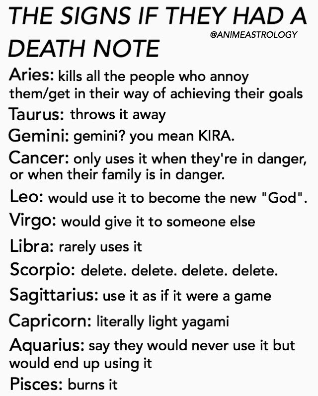 Anime Astrology On Twitter The Signs If They Had A Death Note